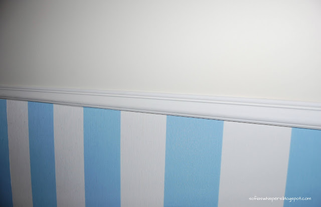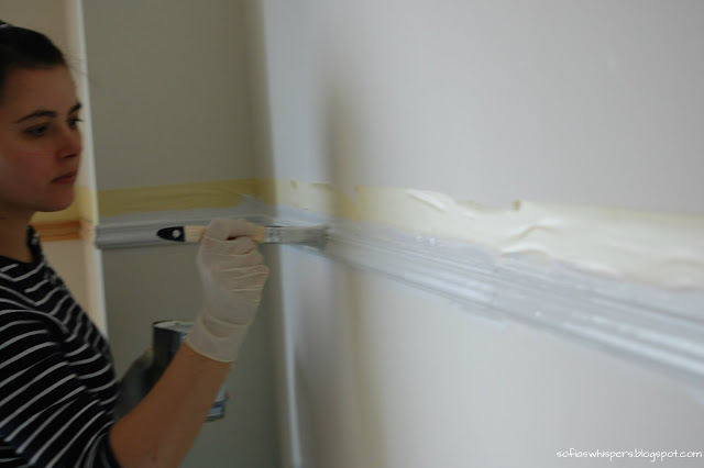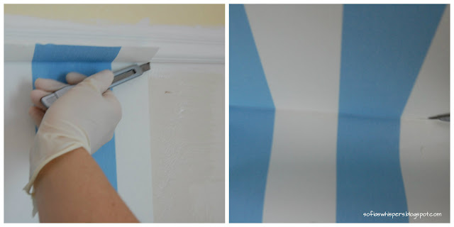 4. Place the masking tape along the top of the wood slats (there's no need to do it below because later will be covering it with the wallpaper);