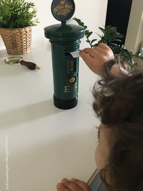 Some time ago, I found this mailbox in a shop, and fell in love with it. Instead of writing a list, we now put the Christmas wishes into the mailbox. Visually, he likes this process better, and physically, he's able to get involved on it.